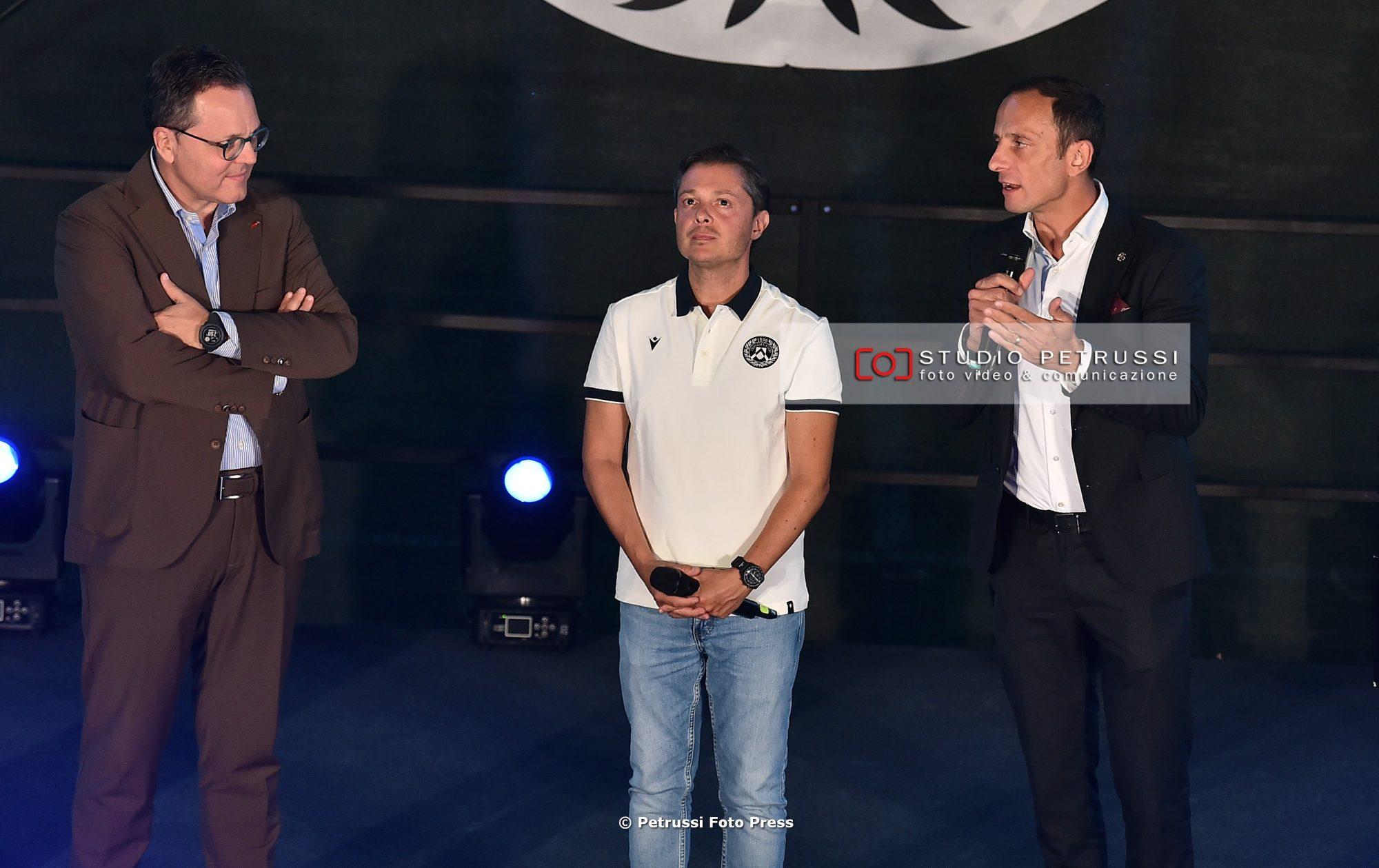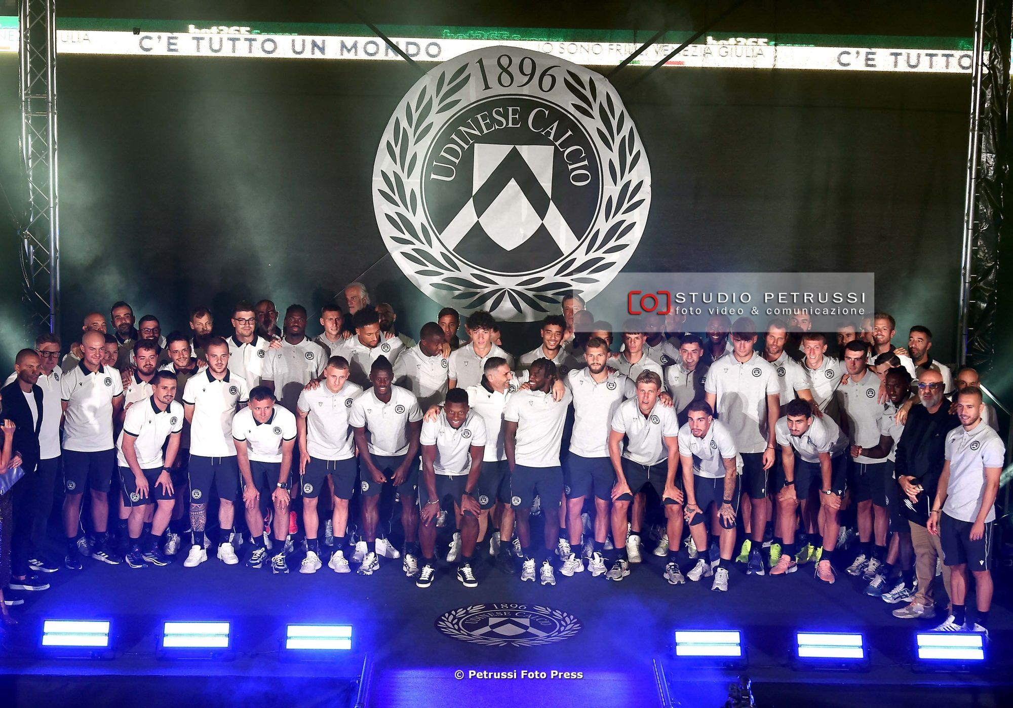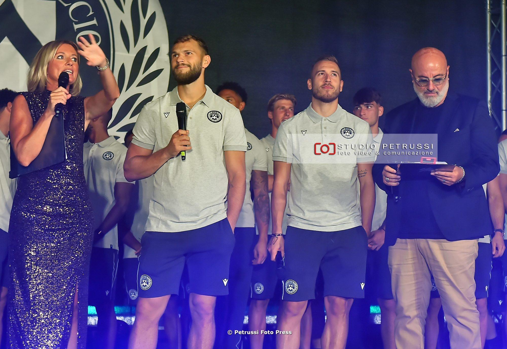 Poi i presentatori Giorgia Bortolossi e Alessandro “Poma” Pomarè hanno chiamato uno a uno tutti i protagonisti della nuova stagione, a cominciare dallo staff tecnico di Kosta Runjaic. Il tecnico tedesco ha improvvisato qualche parola in italiano e un “Mandi furlans” che ha acceso la folla. Con lui sul palco anche il Group technical director Gian Luca Nani e il responsabile dell’Area tecnica Gökhan Inler. La rosa è stata presentata per ruolo, lasciando per ultimi il nuovo capitano (Jesper Karlström) e il vice-capitano (Sandi Lovric). Entrambi hanno garantito, a nome di tutti i compagni, massimo impegno per i colori bianconeri.