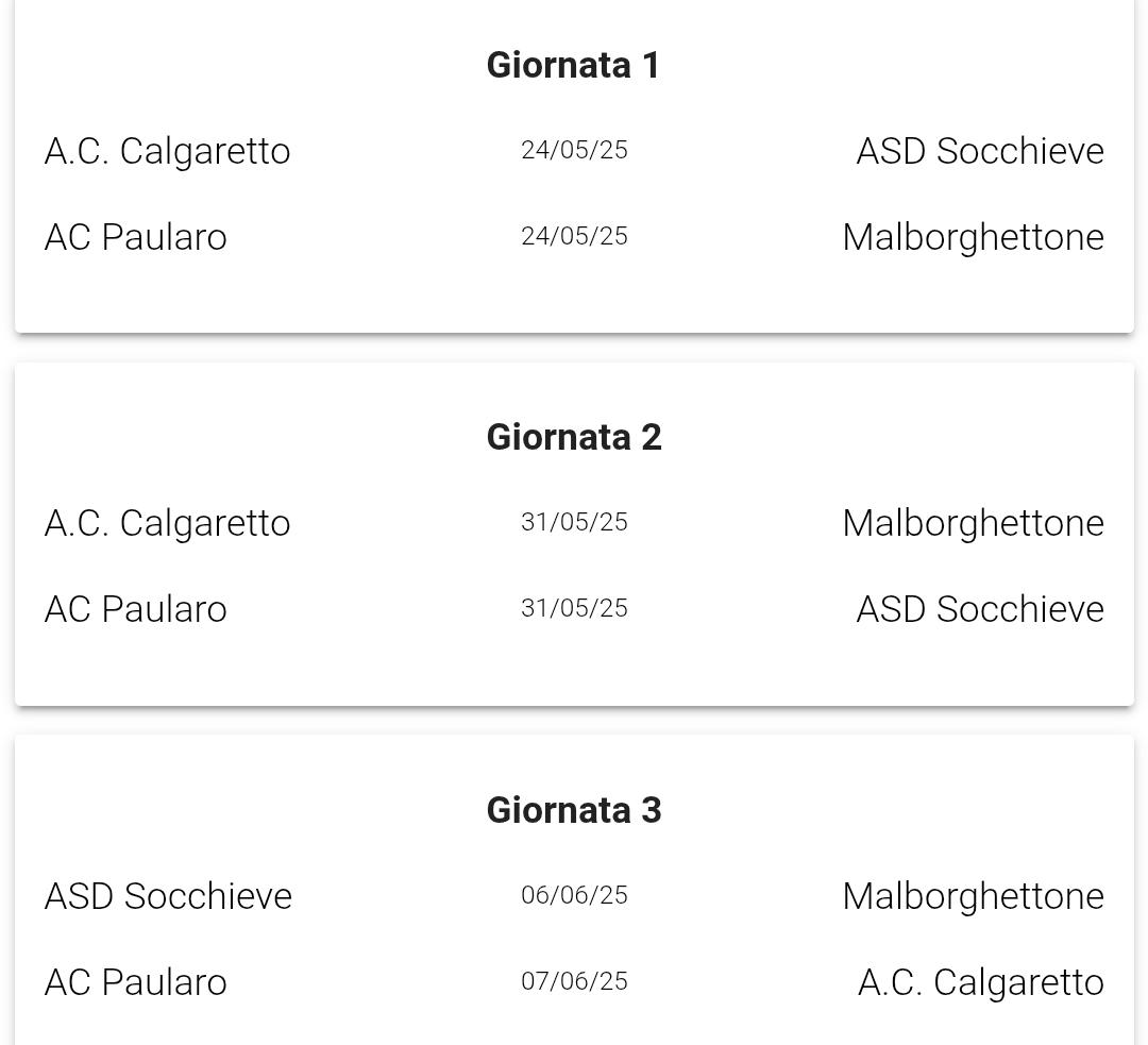 A ciò si aggiunge l'ulteriore novità 2025 rappresentata dalle sfide di Coppa Carnia Over 40, così ripartite: