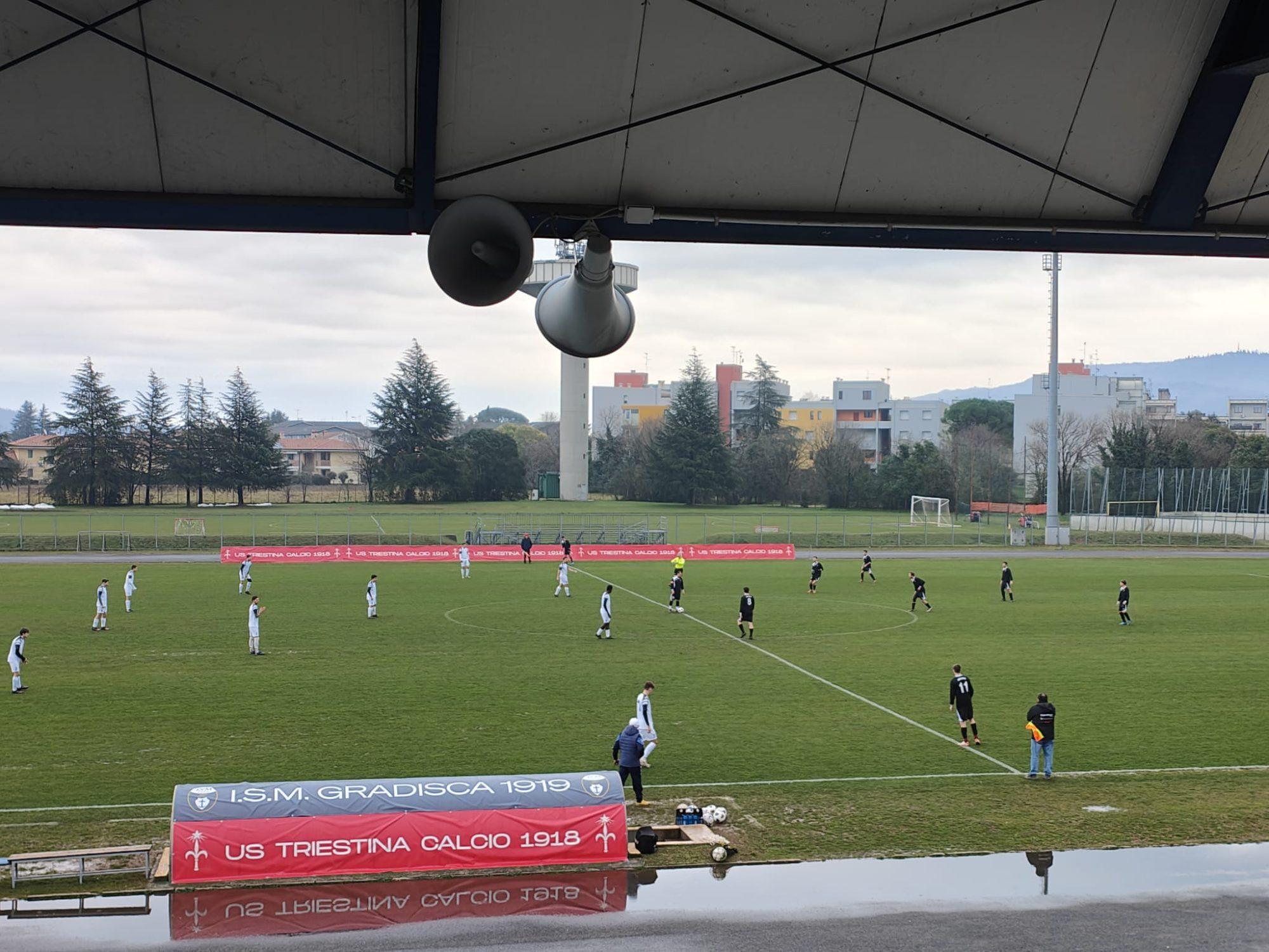 Cominciano meglio la gara i padroni di casa, Diallo sfiora due volte la rete del vantaggio nel primo quarto d'ora ma nonostante la pressione dei gradiscani il risultato resta sullo 0-0 fino al minuto 41. La gara si sblocca grazie al classe 2004 Luca Felline: il terzino di casa prima serve in profondità Diallo, che prova la conclusione, poi è bravo nel seguire l'azione e respingere in rete dopo l'opposizione di Strangolini, 1-0.